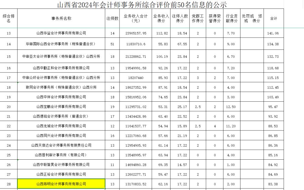 祝賀山西陳明會(huì)計(jì)師事務(wù)所有限公司獲山西省事務(wù)所綜合排名28名